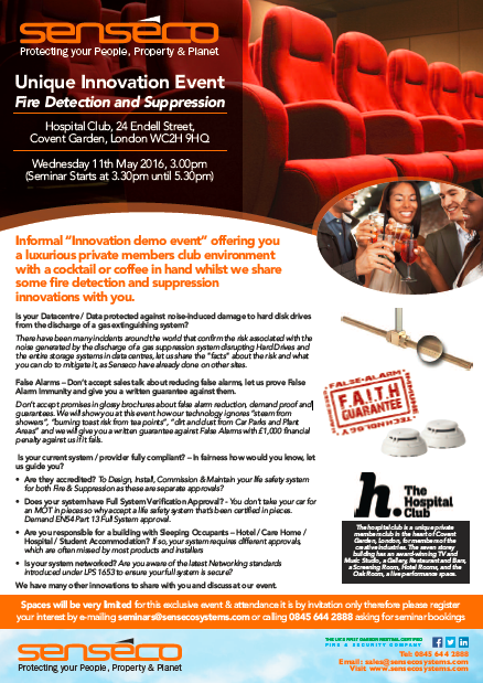 Hopefully this Blog will inspire some debate, hopefully some communication and ideally some attendance at our exclusive event in Covent Garden, London on 11th May 2016 about this subject and various other innovation technology (strictly invitation only for system owners and specifiers) see below and email seminars@sensecosystems.com for details and check availability.