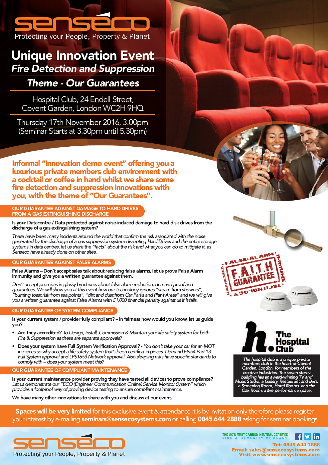 We will also have the physical silent nozzle sample for you to examine and will offer our support in assisting you in protecting your business critical environment please email us at seminars@sensecosystems.com for the details of our “Innovation Event” are available, a 2 hour innovation event in Covent Garden on 11th May 2016. (Strictly Invitation Only)